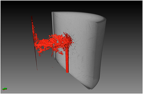 Figure 1. Micro-CT scanner (Xradia Micro-XCT-400) installed at NETL in Morgantown, WVFigure 2. CT scanning image showing gas migration pathways (in red) through fine grain sediment core (in gray)