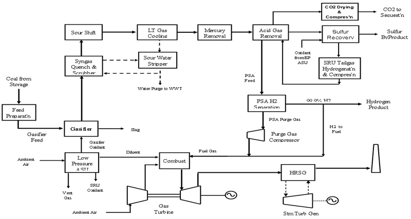 Figure 1: IGCC/Hydrogen Coproduction (With CO2 Sequestration) Block Flow Diagram